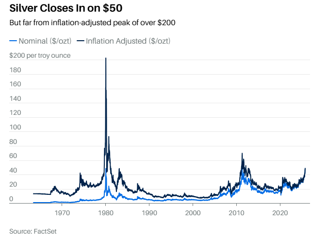 Sprott Asset Management的市场策略师Paul Wong认为,如果银价能持续交投于50美元上方,可能意味着“市场正在重新评估其经济价值和价值储存功能”。