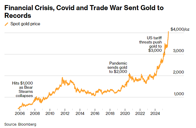 盛宝银行大宗商品策略师Ole Hansen表示:“黄金突破每盎司4000美元,并非单纯由利率预期或美元走弱推动,更深层次反映了投资者心态与全球资本流动的结构性转变。制裁措施、资产扣押事件,以及对财政可持续性的担忧,正促使机构投资者与主权基金将目光转向金融体系之外的实物资产。”