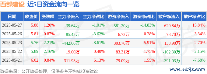 微信股票配资 股票行情快报:西部建设(002302)5月27日主力资金净卖出39.64万元